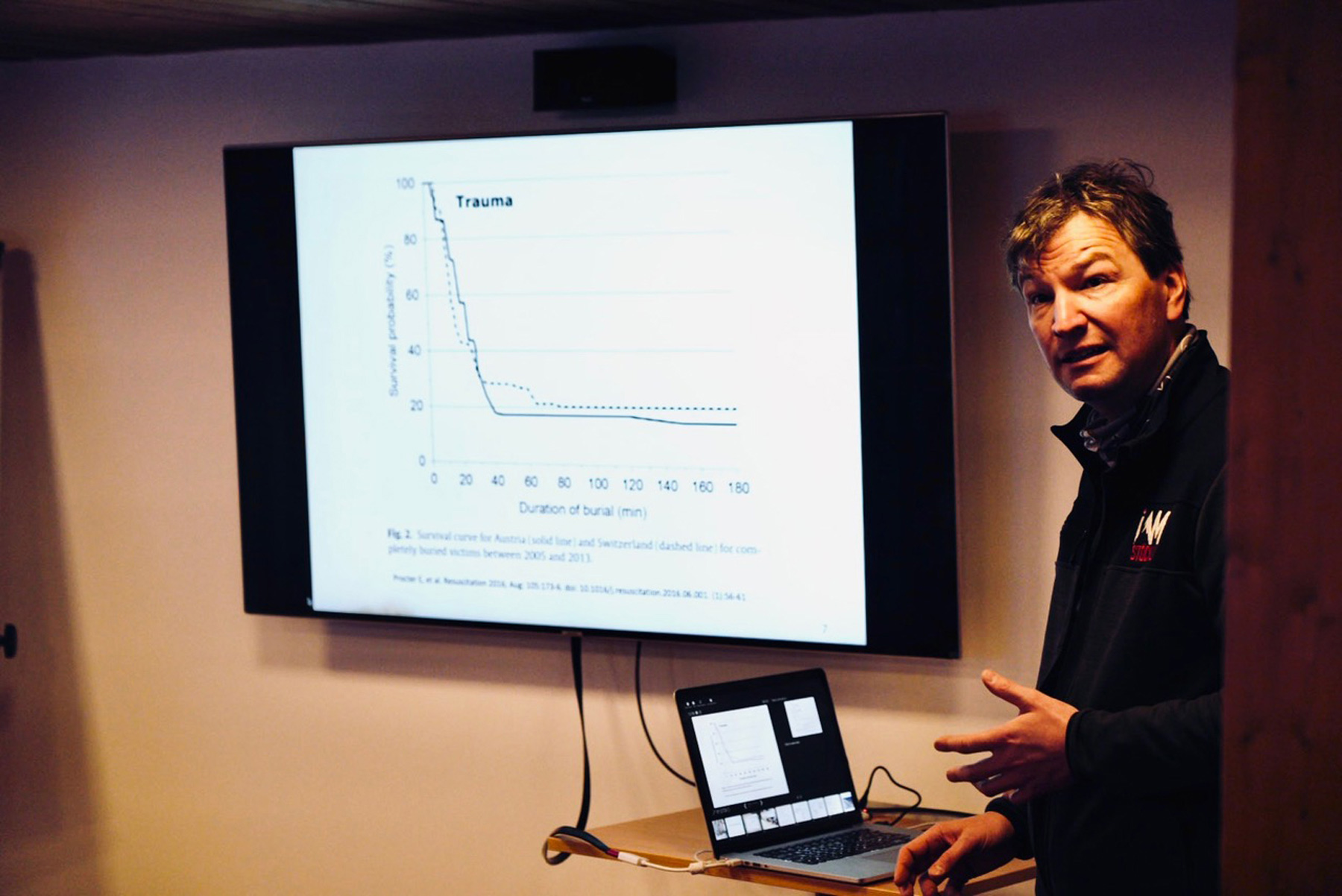 Anschließend herzliche Begrüßung durch Loisi und seinem Team auf der Heidelbergerhütte. Nach dem Abendessen Kurseröffnung und Grußworte durch den Vizepräsidenten der ÖGHAM Peter Paal, der mit 2023 die medizinische Leitung der Lehrgänge übernommen hat. Anschließend Vortrag über „Strahlenschäden im Gebirge" von dem Dermatologen Erik Müller.