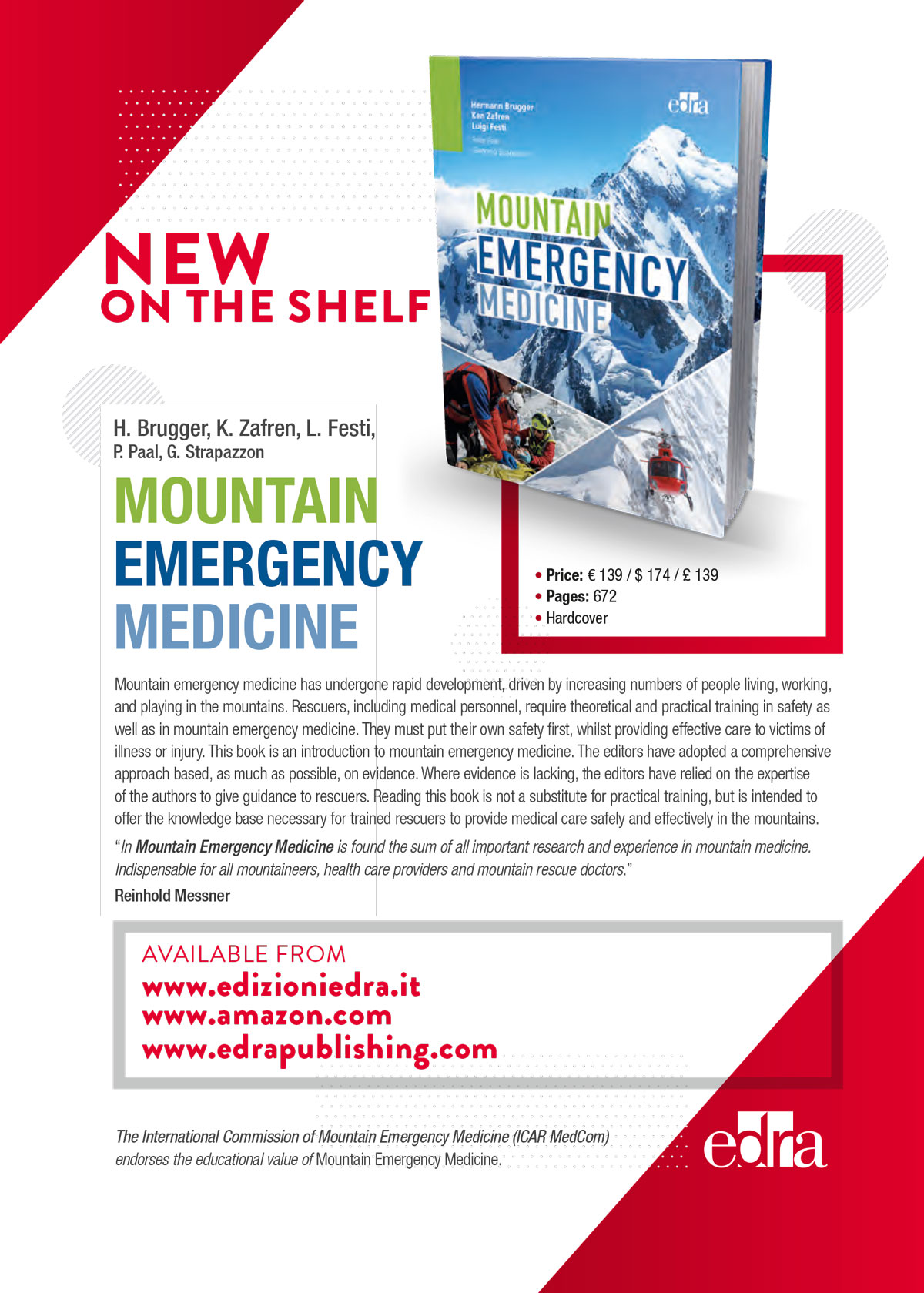 Buchrezension von Wolfgang Lederer: Hermann Brugger, Ken Zafren und Luigi Festi, Hg., Mountain Emergency Medicine. Editorial Edra S.p.A.; 2021, 672 S., ISBN: 9788821447334.